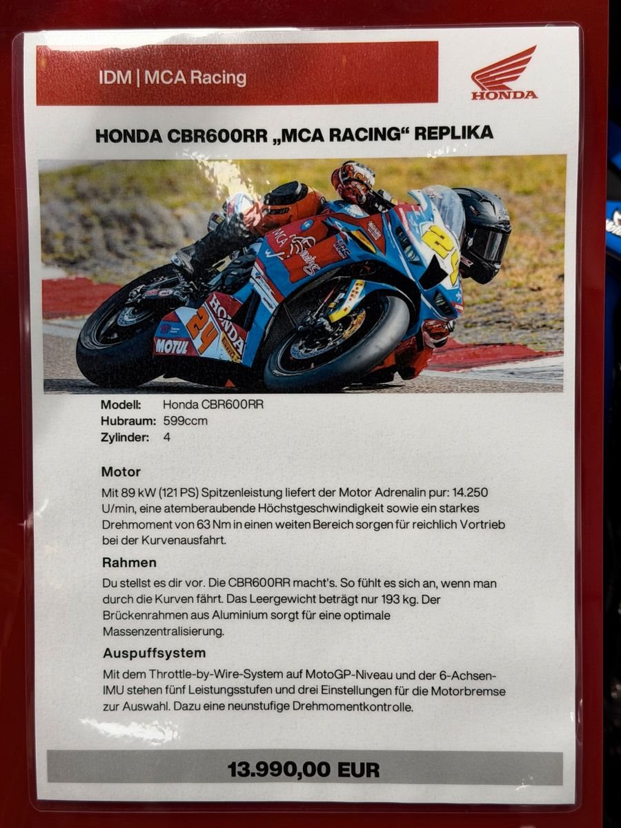Die neue Honda CBR600RR im Design des MCA Racing IDM Rennbikes